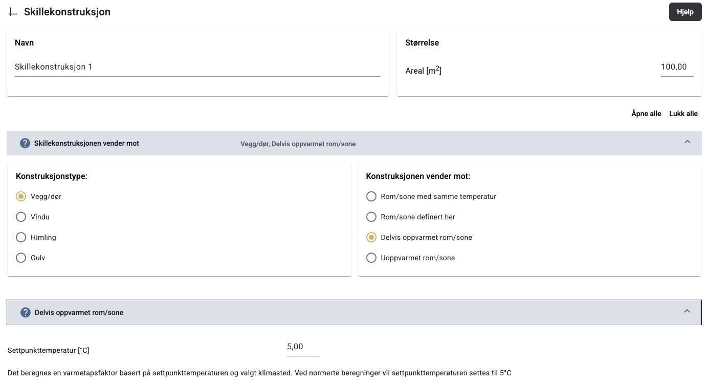 Under Skillekonstruksjon er det kommet et nytt alternativ for hvor konstruksjoner vender mot. Det heter i Simien PRO Delvis oppvarmede rom/sone og er i NS 3031:2025 omtalt som delvis klimatiserte soner.